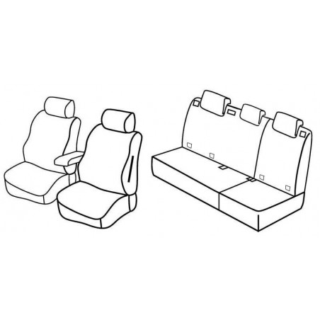 | Caratteristica | Con o senza bracciolo anteriore, Sedili anteriori con retro in plastica rivestita, Poggiatesta posteriori ribassati, Sedile e schienale posteriori ripiegabili [2/3 + 1/3], Copertura airbag in plastica, Cintura di sicurezza centrale posteriore incorporata nello schienale, Isofix |