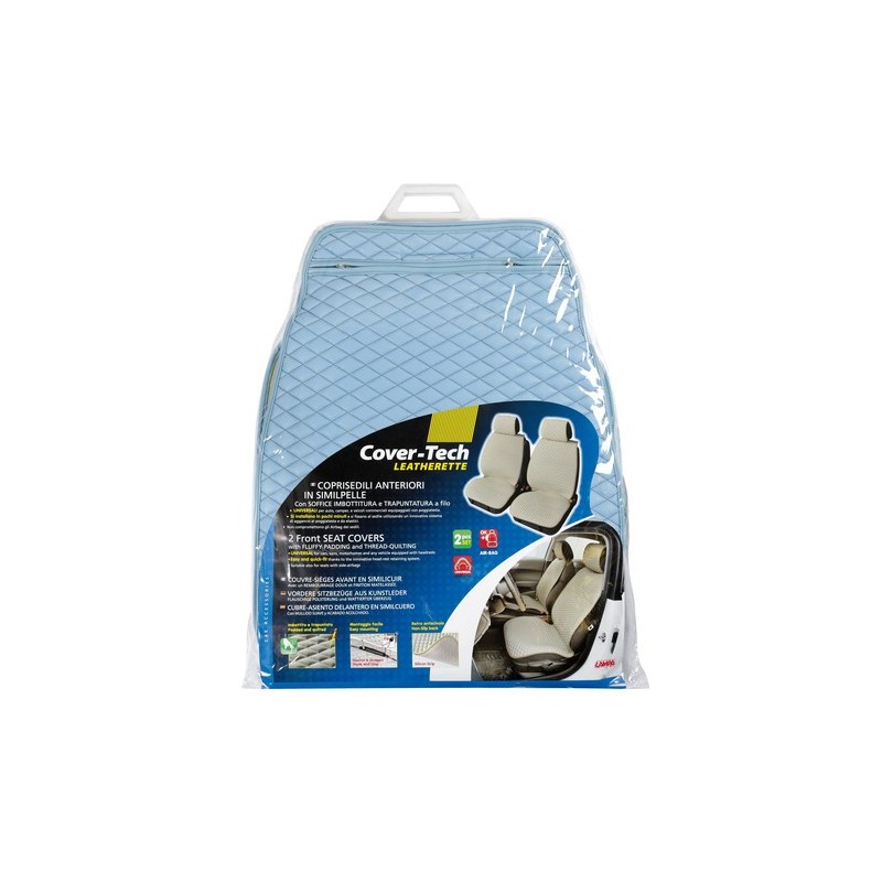 Cover-Tech Leatherette coppia coprisedili anteriori in similpelle - azzurro - grigio