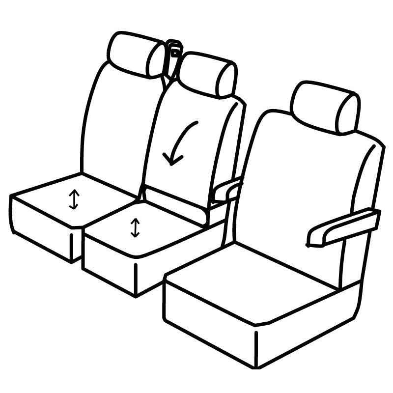 | Caratteristica | Prima fila: cintura di sicurezza centrale incorporata nello schienale, Sedile centrale anteriore con retro in plastica, Sedile passeggero 2 posti, Prima fila: schienale passeggero ripiegabile [1/2 + 1/2], Con o senza i 2 braccioli anteriori, Portaoggetti sotto al sedile del passeggero |