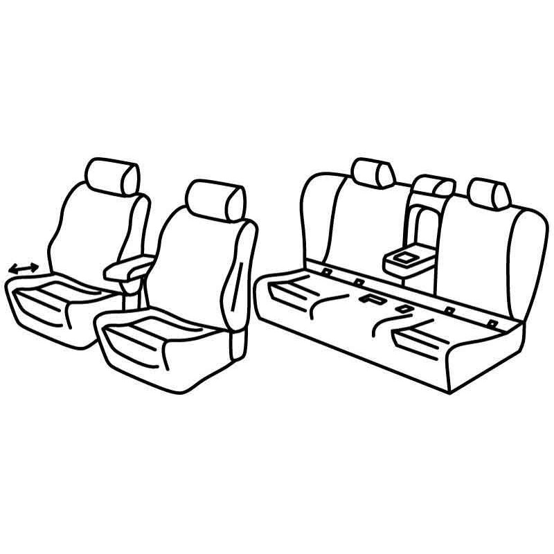 CaratteristicaSedili anteriori ergonomici, Airbag, Bracciolo posteriore con portabevande incorporato, Schienale posteriore ripiegabile [1/3 + 1/3 + 1/3], Con o senza bracciolo anteriore, fodera copre solo la posizione arretrata, Sedili anteriori con retro in plastica, Sedile posteriore in un pezzo unico, Schienale posteriore con estremità laterali separate, Isofix, Sedili anteriori scorrevoli