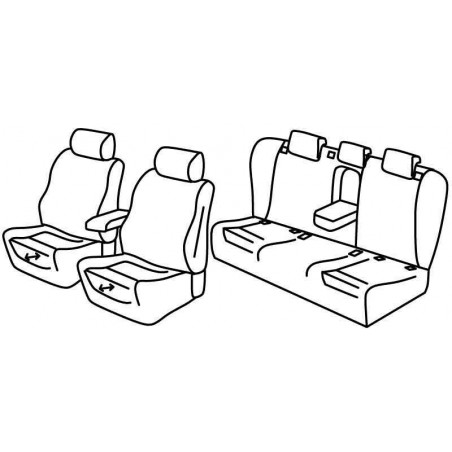 CaratteristicaSchienale posteriore ripiegabile [2/3 + 1/3], Con o senza bracciolo anteriore, Poggiatesta anteriori non rimovibili, Airbag, Cintura di sicurezza centrale posteriore incorporata nello schienale, Schienale posteriore con apertura per passaggio sci, Sedili anteriori ergonomici, Sedili anteriori con retro in plastica, Bracciolo posteriore, Isofix