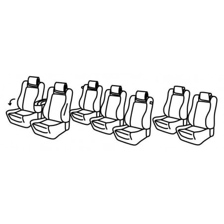 | Caratteristica | 3 file di sedili, Con o senza i 2 braccioli anteriori, Sedile passeggero ripiegabile in avanti come tavolino, Airbag, Sedili anteriori sportivi, Anche per sedili anteriori con tavolino sul retro, Schienali posteriori con maniglie per ribaltamento |