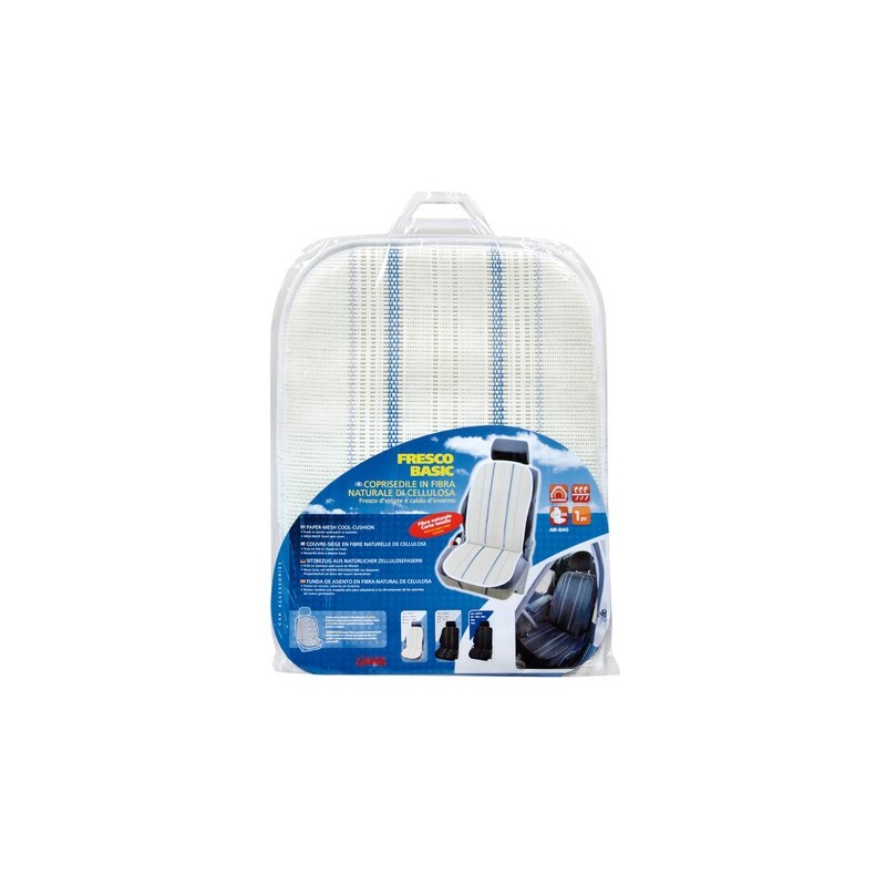 Fresco d’estate e caldo d’inverno. Nuova serie: schienale alto per adattarsi alle misure dei sedili di nuova generazione. Universale, si adatta facilmente ad ogni tipo di sedile e si fissa utilizzando le cinghie in dotazione. Idoneo anche per le vetture con l'airbag incorporato nel sedile