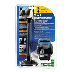 Rivestito internamente in gommaspugna. Idoneo per l’utilizzo con cavetto di alimentazione o auricolare collegato all’apparecchio. Funzione di rilascio automatico tramite pulsante. Fissaggio tramite clip per bocchette aerazione o ventosa per l’ancoraggio su superfici lisce.